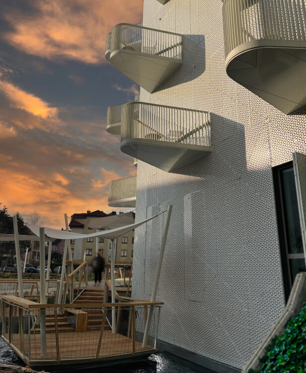 Tworzymy wyjątkową przestrzeń, którą docenią miłośnicy dobrej architektury. Restauracja NAMI znajduje się z kompleksie Europejskiego Centrum Rodziny INVICTA, obiekcie, który był wielokrotnie nagradzany i wyróżniany w międzynarodowych konkursach architektonicznych.